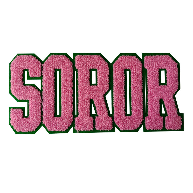 Show your honor and team spirit! Our SOROR chenille letter ironing is the perfect choice. Made from high-quality chenille material, this patch features unique embroidery work that will instantly make your clothing and items unique. With a simple ironing method, you can easily add it to clothes, bags, hats and other items to show your pride and belonging to the SOROR team. Whether it's a campus event, a social gathering, or any other occasion, this chenille embroidery patch can add a sparkle and show off your team spirit.